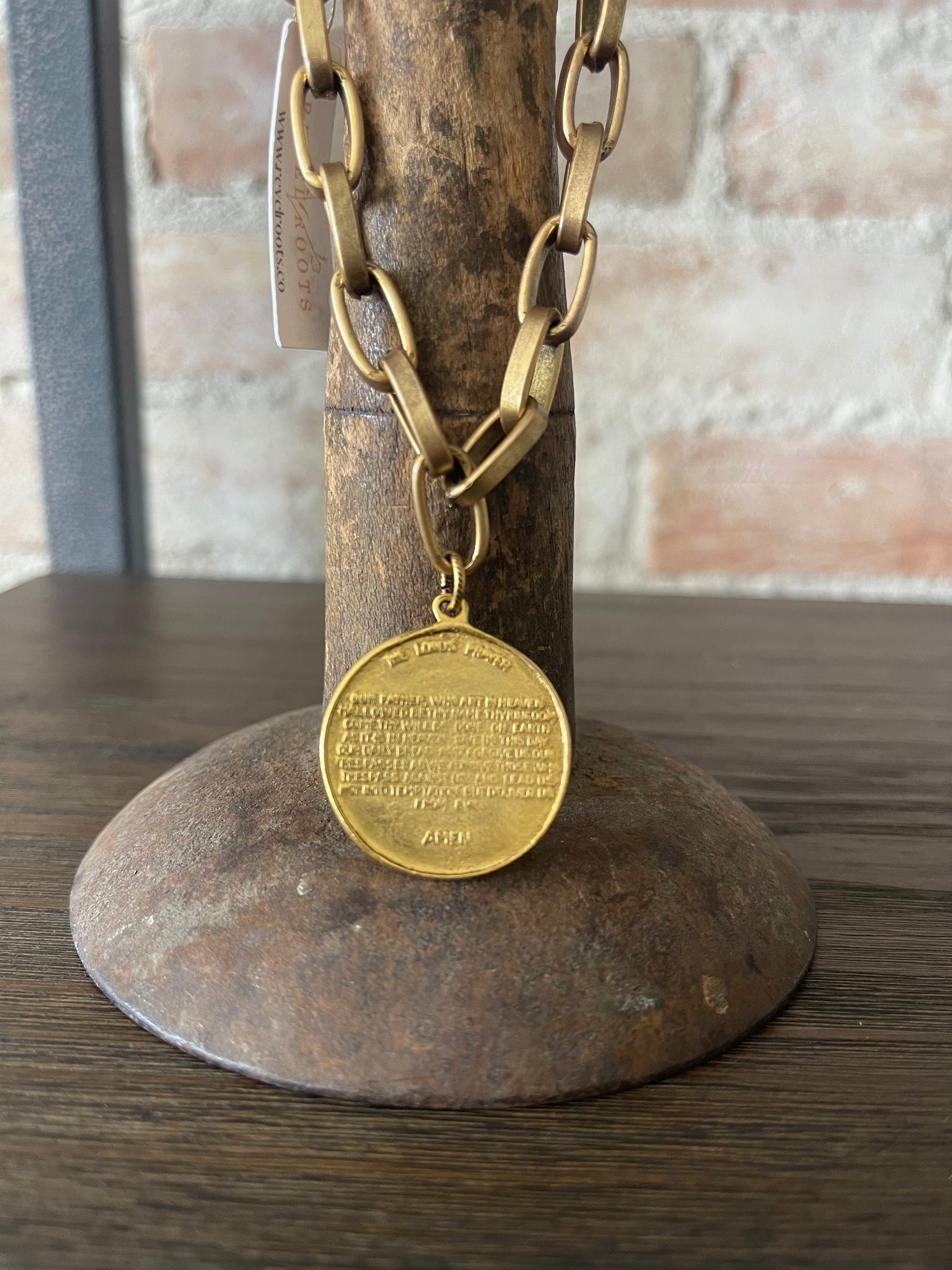 • cross pendant and the lords prayer on the other side